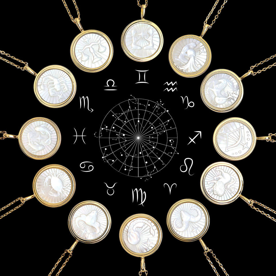 14K Gold Plated Sterling Silver Mother of Pearl Zodiac Pendant Necklace